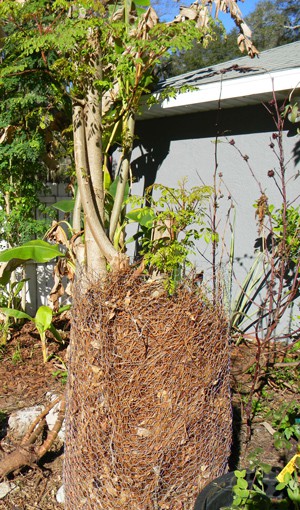 I’ve posted on moringa before and mentioned that I protect moringa trees from frost with a ring of chicken wire…