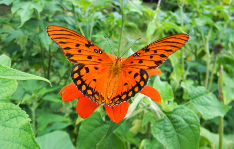This was the fist spring that I planted tithonia rotundifolia seeds . . . and quickly learned that these are a must have in my garden. True butterfly magnets!