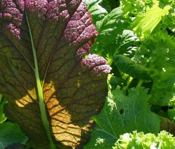 Though my tomatoes have been an uphill battle, my mustards are doing quite nicely: I took that picture a little…