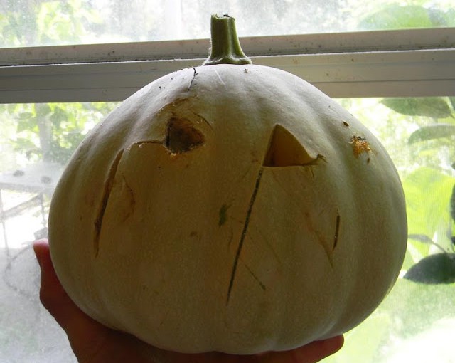 Okay… this is really, really weird. I saw that one of the Seminole pumpkin I had growing on the fence…