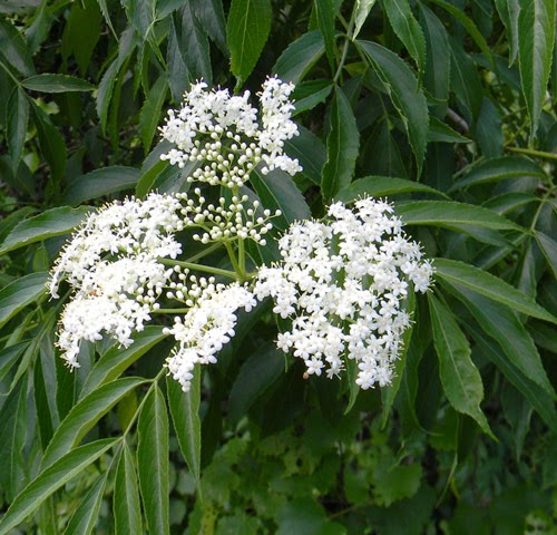 Keep your eyes open for patches of elderberries at this time of year. The blooms are a dead giveaway: