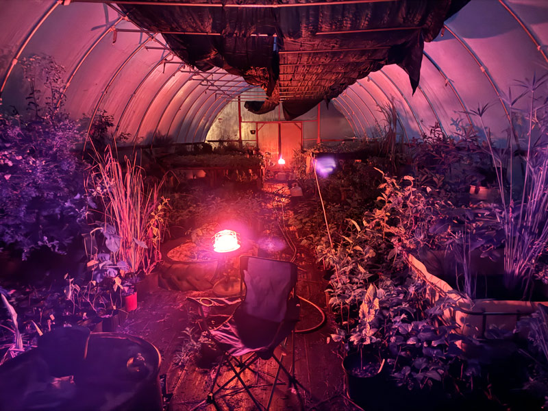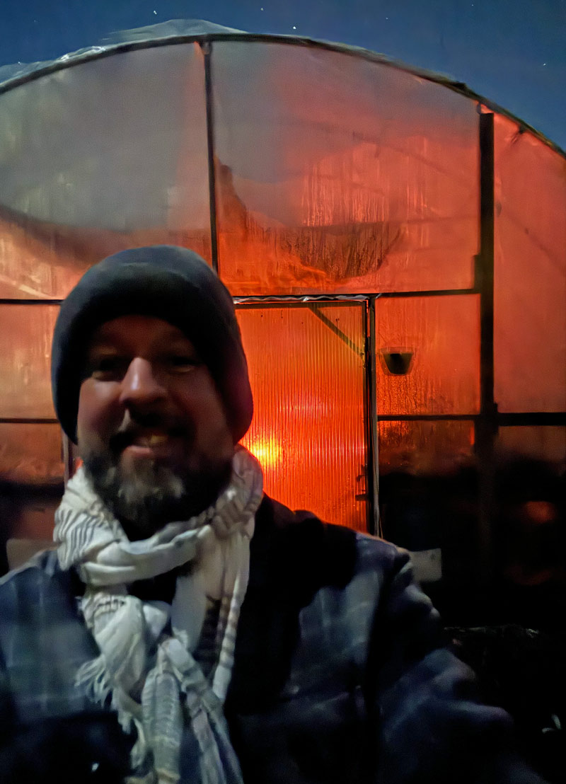 The other night I sent some pictures from inside the greenhouse to my brother.
