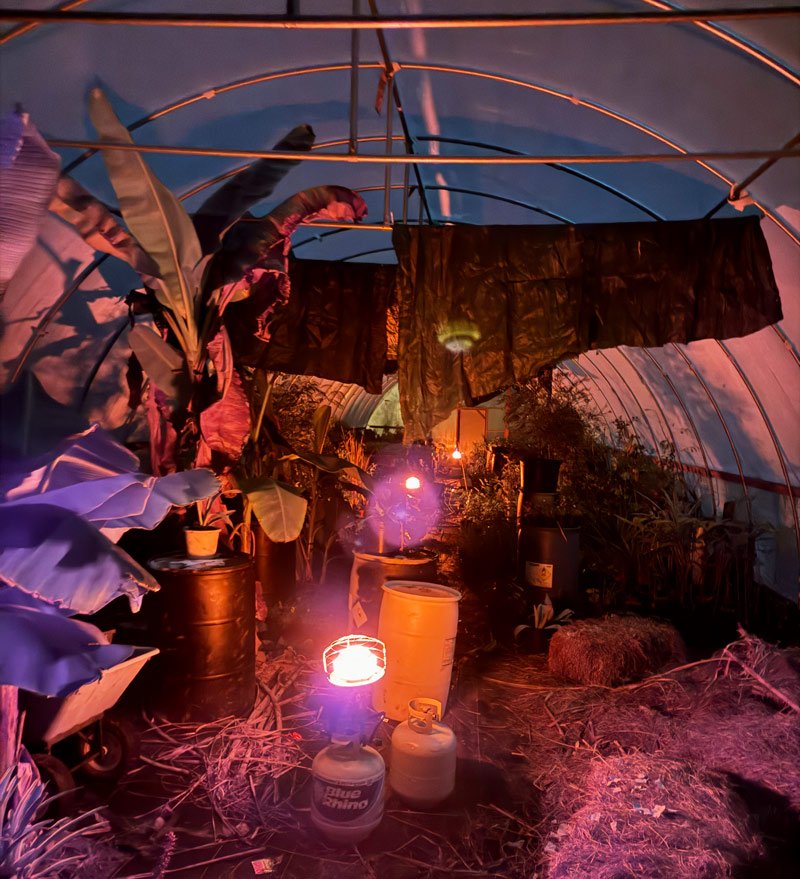 Here in the Deep South, we don’t get long stretches of freezing weather. This has allowed us to get away with some cheap greenhouse heating options. This is a quick overview of our barrel/propane heating combo we’re using right now to keep plants alive through freezing nights.