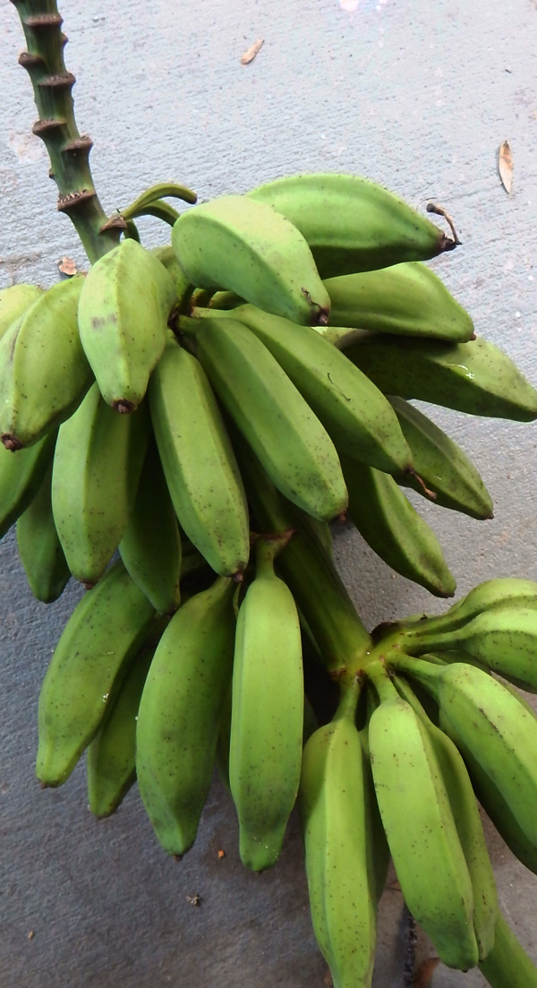 They’re like big lilies, really. Once a stalk produces bananas, that one won’t produce again so you can cut it down, then let the next smallest tree take over.